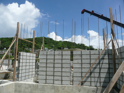 補強コンクリートブロック造のため、ブロック割りに合わせて壁の鉄筋も配筋します。